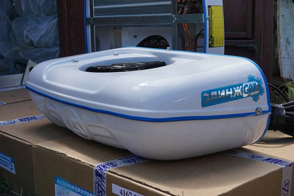 Применение: рефрижераторная холодильная (отопительная) установка "Элинж" С07 предназначена для создания температурного режима -20 … +12 градусов, в кузове автомобиля объёмом до 9 м3.