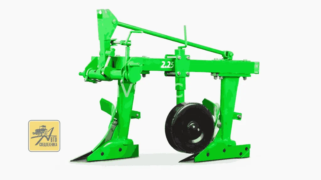 При производстве плуга В 2.25 в конструкцию включается 2 корпуса. Оборудование предназначено для работы на местности с уклоном не более 8,5°. Подразумевается взаимодействие с тракторами класса 0,6 и 1,4, которые оснащены стандартным колесным балластом.